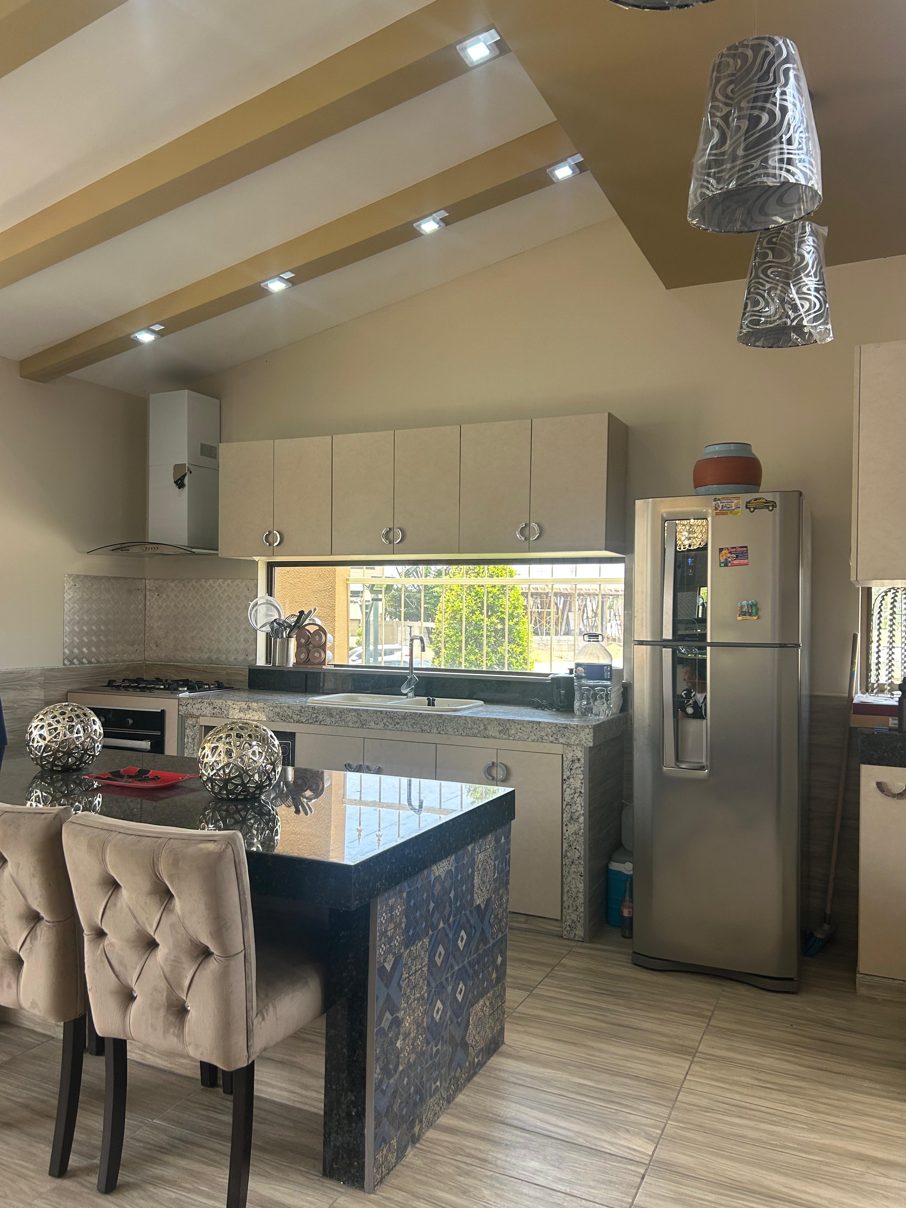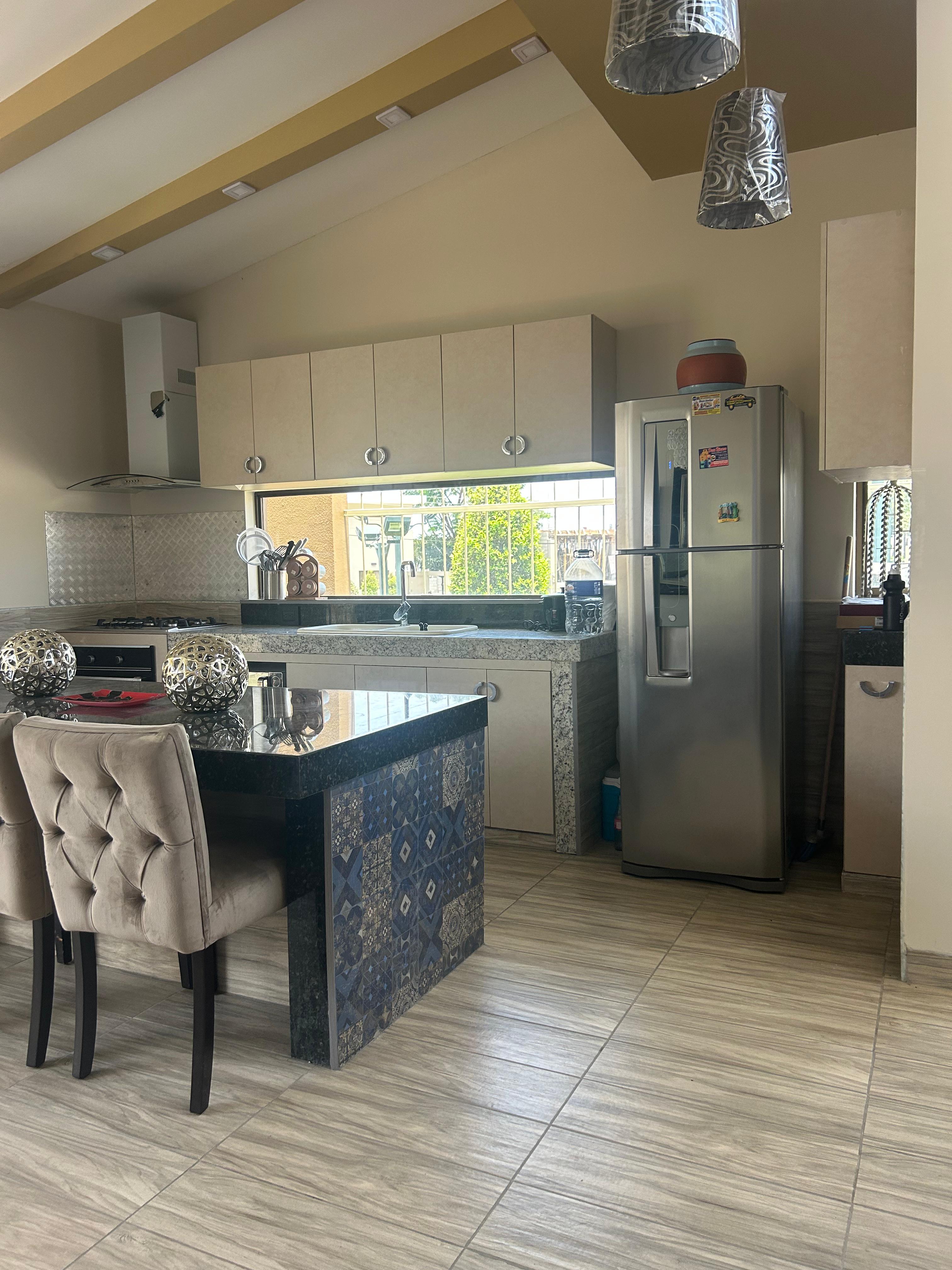 Cocina abierta con anaqueles altos y bajos