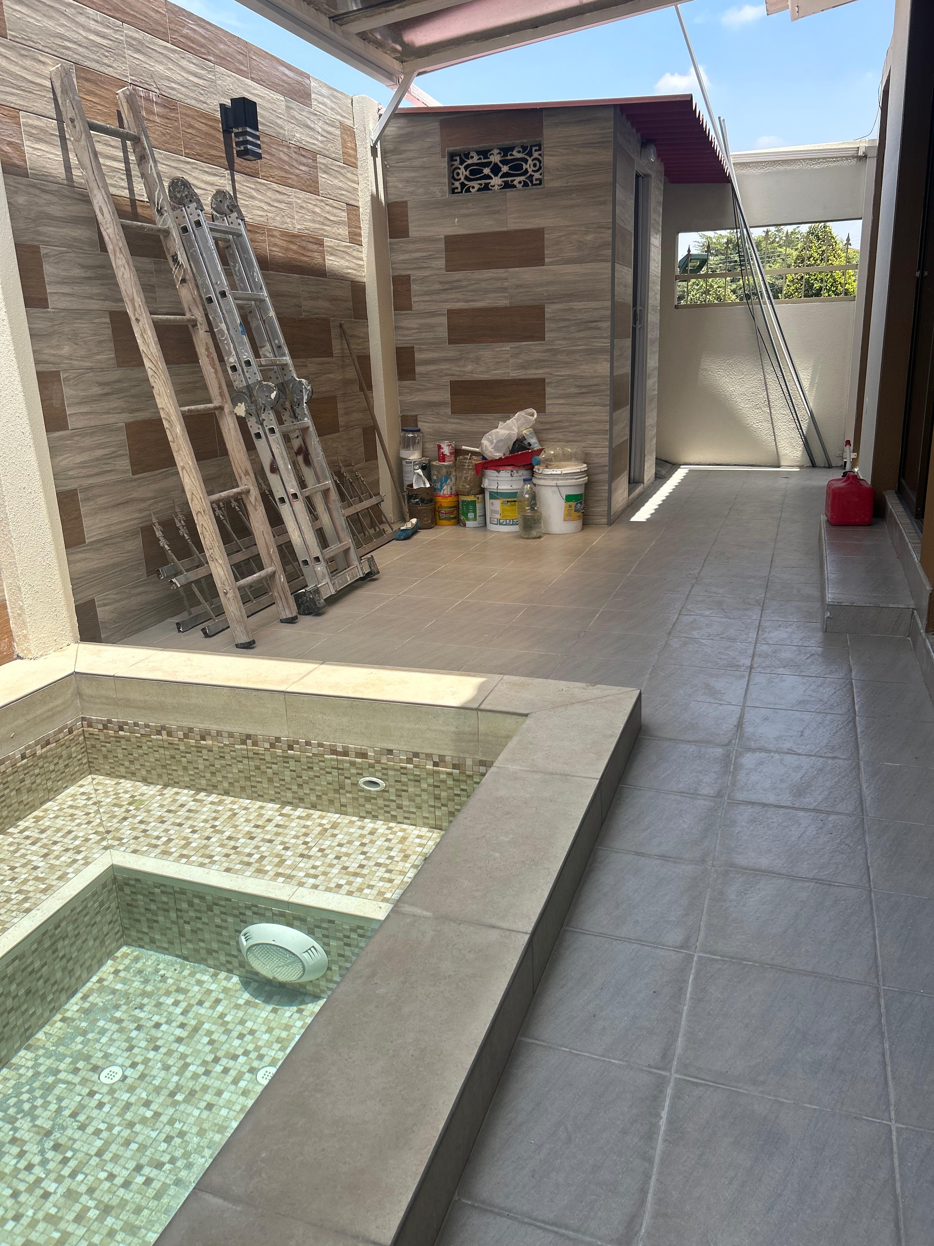 Sala, comedor , patio con jacuzzi , 1 baño completo y doble corredor
